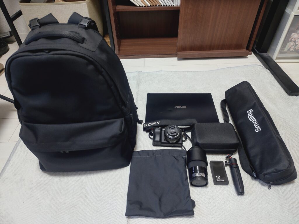 こちら僕がカメラを持って出かける際に持ち歩く機材になります。